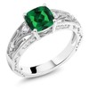 Gem Stone King 925 Sterling Silver Green Nano Emerald Engagement Ring For Women (1.16 Cttw, Cushion 6MM, Available in size 5, 6, 7, 8, 9)