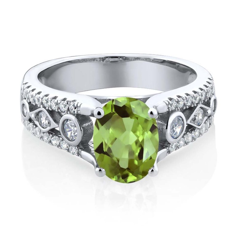 - Stunning Gemstone: The ring features a round-cut green peridot gemstone with a total carat weight of 1.89 cttw. The peridot's bright and vivid green color adds a pop of color and radiance to the ring, making it a standout piece.