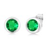 Gem Stone King 925 Sterling Silver Green Simulated Emerald Bezel Setting Stud Earrings For Women Men (1.54 Ct Round 6MM)