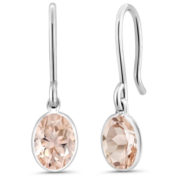 Gem Stone King 925 Sterling Silver Peach Morganite French Wire Dangle Earrings For Women (1.30 Cttw, Gemstone October Birthstone, Oval 7X5MM)