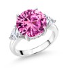 Gem Stone King 925 Sterling Silver Pink Created Sapphire and White Moissanite 3-Stone Ring For Women (8.74 Cttw, Round 12MM, Trillion 5MM, Available In Size 5, 6, 7, 8, 9)