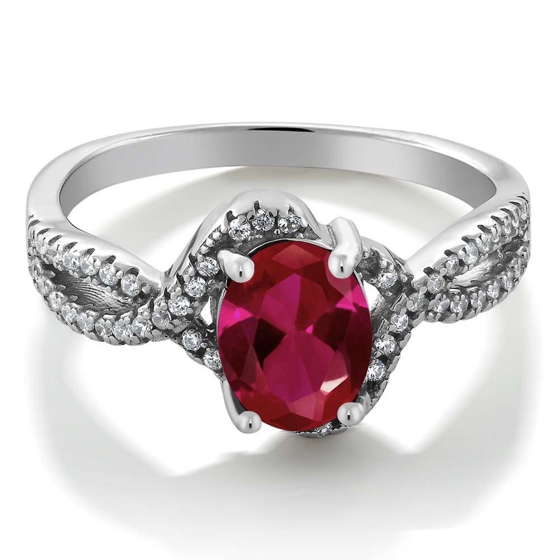 Gem Stone King 925 Sterling Silver Red Created Ruby Jewelry Ring For Women (2.13 Cttw, Oval 8X6MM, Available 5,6,7,8,9) (Size 8)