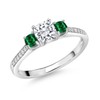 Gem Stone King 925 Sterling Silver White Moissanite and Green Nano Emerald 3 Stone Engagement Ring For Women | 1.04 Cttw | Cushion 5MM and 3MM | Available In Size 5, 6, 7, 8, 9