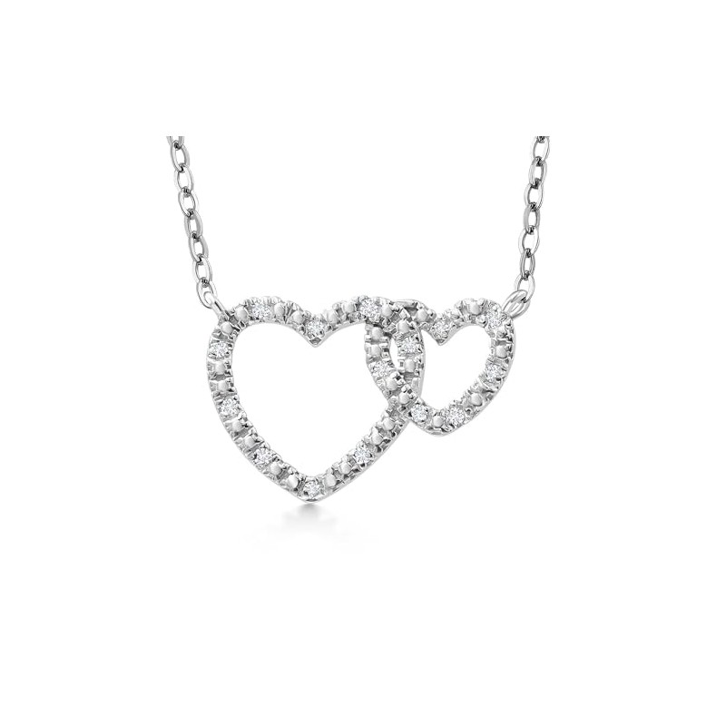 - Exquisite Double Heart Design: Celebrate love and elegance with our 18K Gold Plated Silver Necklace, featuring two beautifully interlocked open hearts encrusted with white lab-grown diamonds. This stunning design symbolizes love's unbreakable bond and adds a touch of romance to any ensemble.