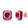 Gem Stone King Made In Italy 18K Rose Gold Plated Silver Red Simulated Ruby Red Enamel Earrings For Women (8MM Cushion, 1/2 Inch)