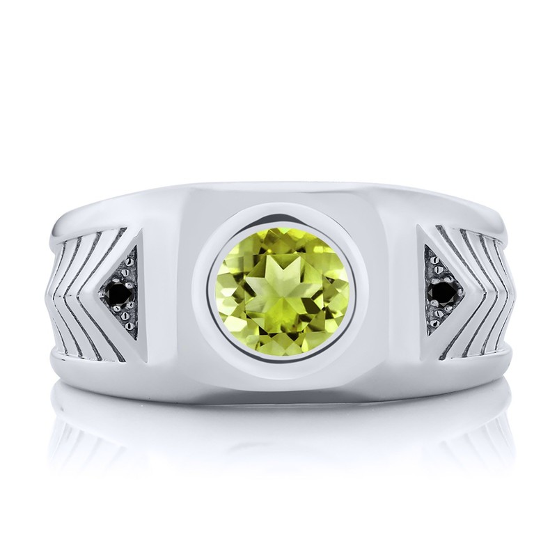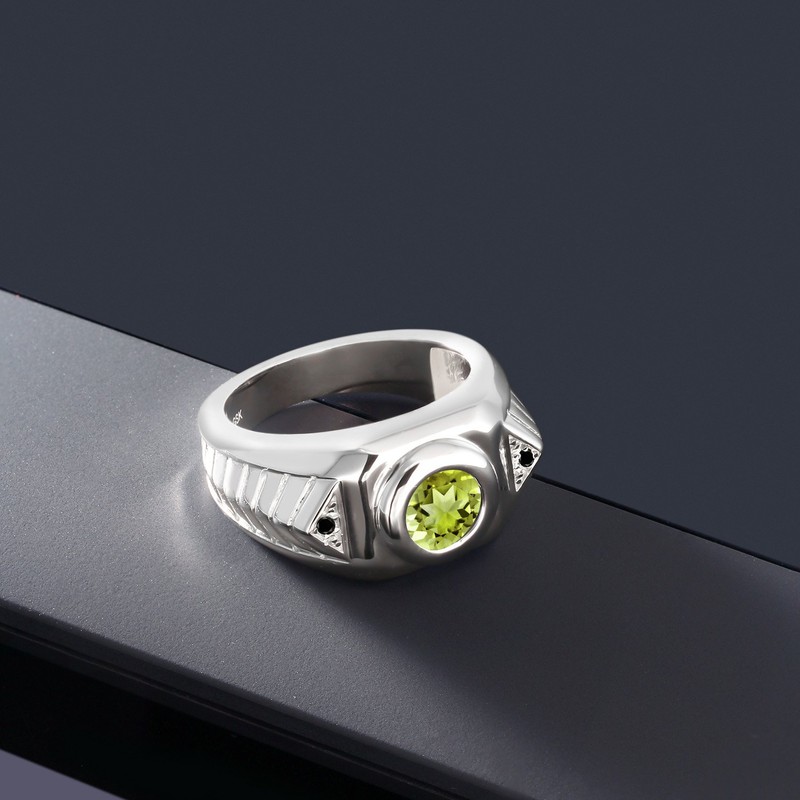 - Masculine Elegance: Elevate your style with our distinguished Men's 925 Sterling Silver Round Green Peridot and Black Diamond Ring. The captivating Round Green Peridot and Black Diamond gemstones, totaling 1.95 Cttw, exude masculine elegance, making a bold statement on his finger.