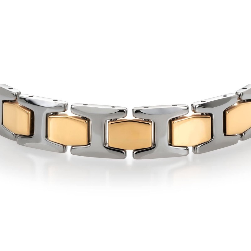 - Shiny Silver Tungsten and Gold IP Shiny Polished Tungsten Link Bracelet