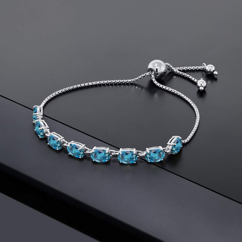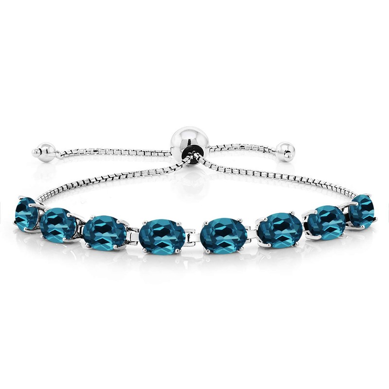 Gem Stone King - Pulsera de tenis de 8 piedras de nacimiento ovaladas de 7 x 5 mm para mujer, plata de ley 925, pulsera de bollo, totalmente ajustable hasta 9 pulgadas, fácil de poner y quitar, Una