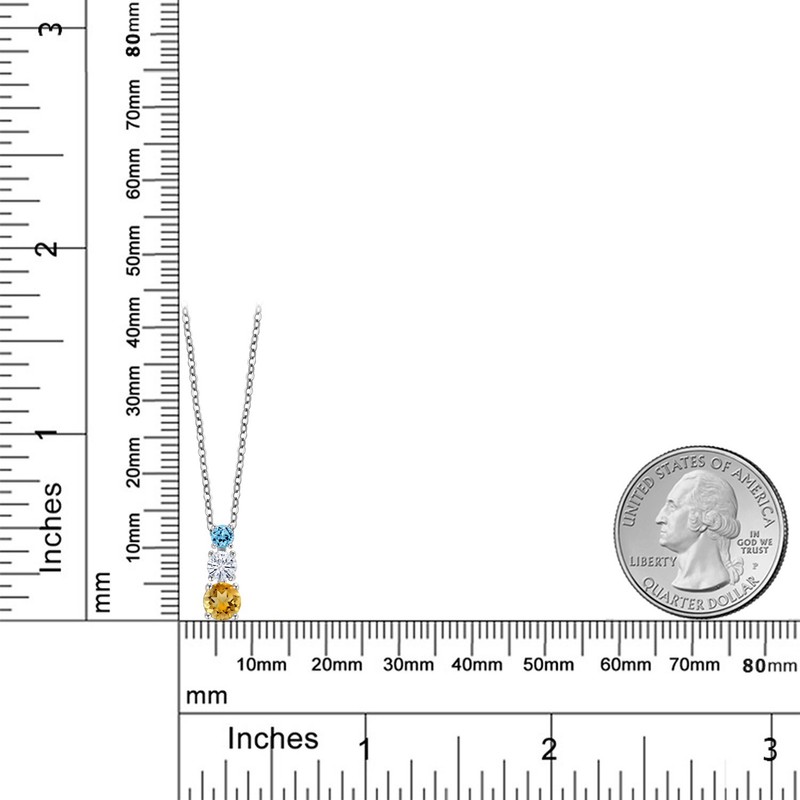 Yellow Citrine White Moissanite Swiss Blue Topaz 3 Stone Pendant Necklace For Women (1.11 cttw, Gemstone Birthstone, Round 5MM, 4MM and 3MM, with 18 Inch Chain)