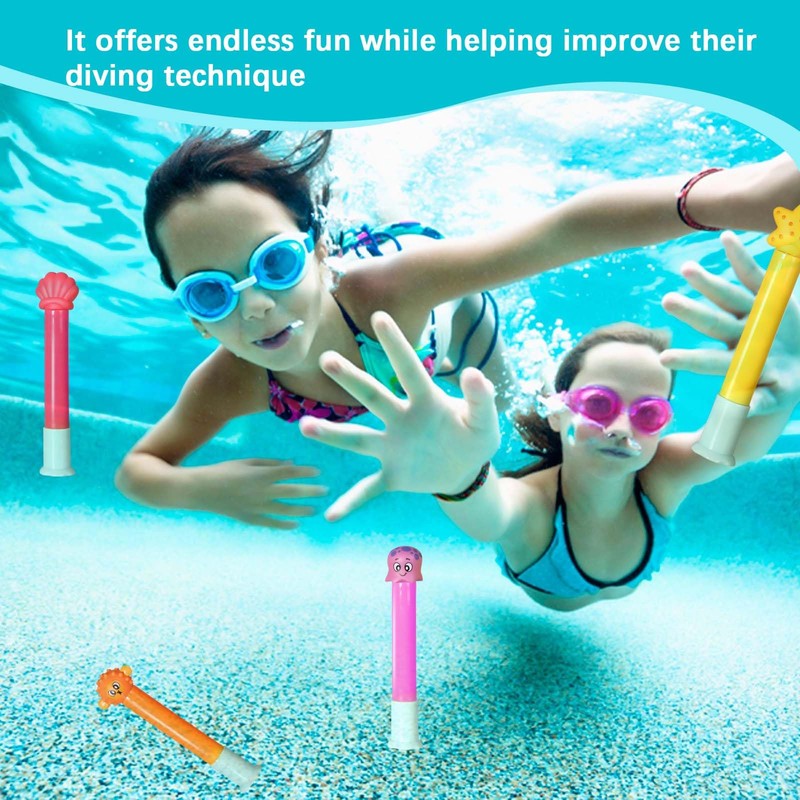 Gemdoit 4 Pack Swimming Pool Dive Sticks for Kids Swimming Gifts, Summer Swim Dive Training, Summer Fun Swimming Toys, Water Fun Pool Games (Dive Sticks)
