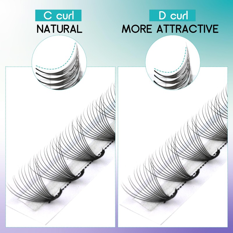 - Thin Base & Wider Fan: These eyelashes have thinner eyelash root and wider compartments than the others, "thin base" are easier to mix with eyelash glue, which makes the application easier; "Wider Fan" makes fluffy effect