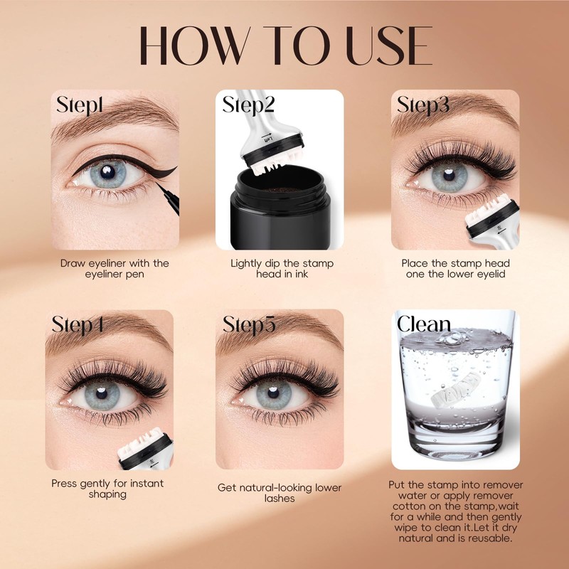 - 【2 in 1 Lower Lash Stamp】:Eyeliners and eyelashes in one stroke can create a natural lower lash effect in seconds effortless. The one-piece design is time-saving and convenient. And two lash stamps corresponding to the left and right eyes respectively, which can better fit the curvature of the eyes.