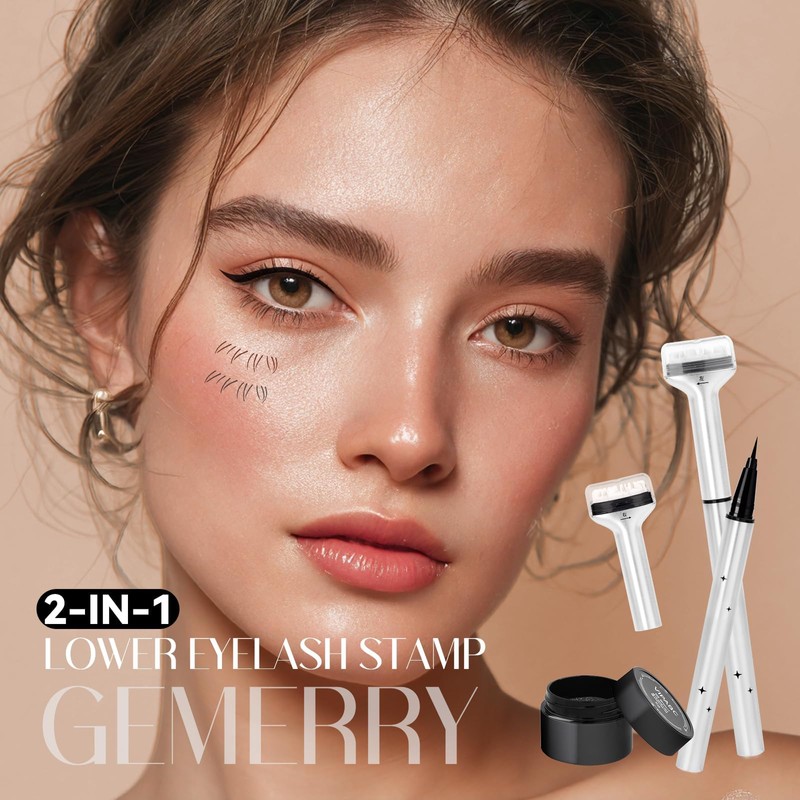 GEMERRY Bottom Eyelash Stamp Waterproof Long Lasting Lower Lash Stamp with Ink 2 in 1 Eyeliner Liquid Kit (Black)