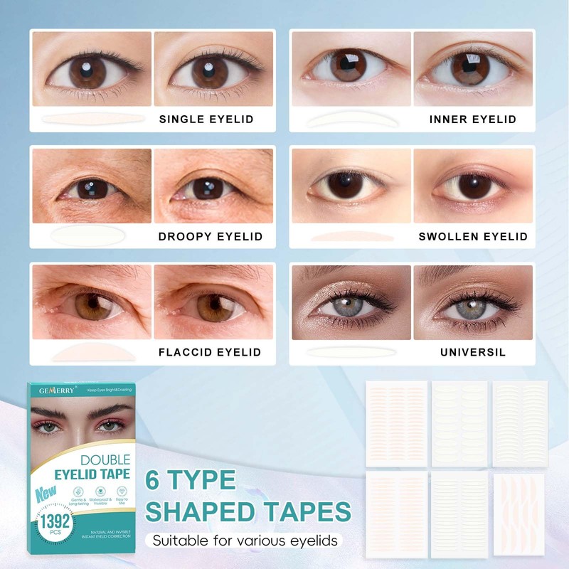 GEMERRY GEMERRY 1392PCS Eyelid Tape Breathable Waterproof long-lasting Double Eyelid Tape Instant Invisible Eyelid Lifter Strips Ultra-Thin Double Eyelid Tape for Hooded, Droopy, Uneven, Mono-eyelids