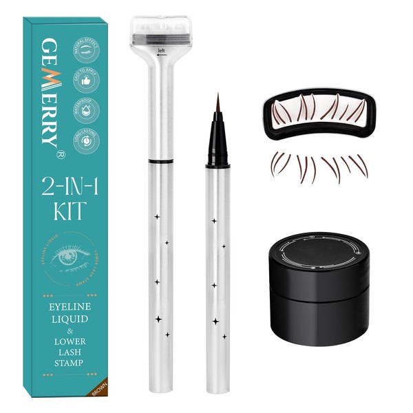 GEMERRY Lower Lash Stamp Waterproof Long Lasting 2 in 1 Bottom Eyelash Stamps Kit With Ink(Brown)