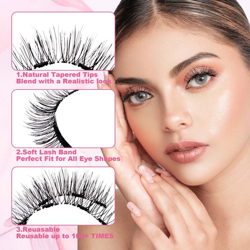 - Magnetic eyelash set: This magnetic eyelash set includes 1 pair of magnetic eyelashes, 1 pair downward and 1 pair downward, and 1 magnetic eyelash applicator. With them, you can wear beautiful eyelashes anytime and anywhere, making you shine brighter anywhere.