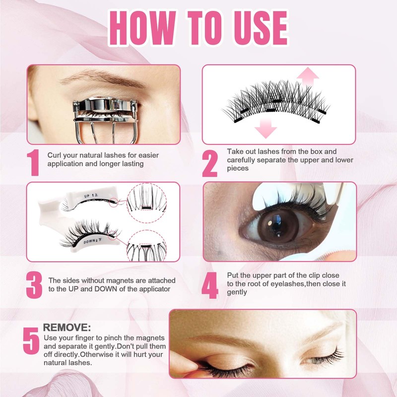 - No glue or eyeliner pen: no glue or eyeliner pen is needed to paste false eyelashes! Magnetic eyelashes are safe and will not irritate the eyes. In addition, magnetic eyelashes are easy to remove by simply pinching the small magnet at the end of the eye and gently wiping it. No need to use eyelash remover! No need for glue!