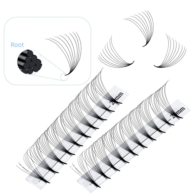 - Finished fans: the eyelashes are ready fanned (pre-made fans), saves a lot of time when applying eyelashes; easy to use, easy to remove, no residue, stable bend, hypoallergenic, tangle-free; perfect for make-up salon and application at home