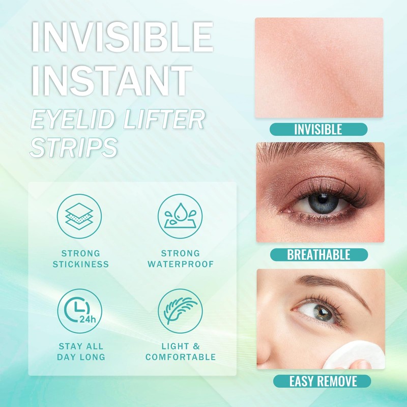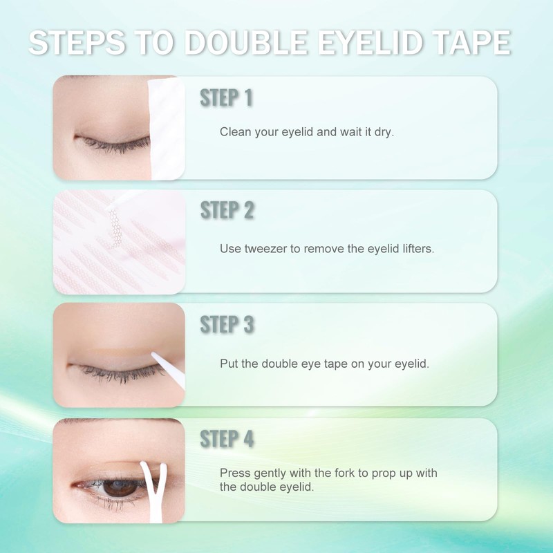 - Easy to use, durable and waterproof: super adhesive double eyelid tape that provides unparalleled comfort and convenience for your daily make-up. Good self-adhesive strength helps to correct sagging eyelids, just like natural eyelids, is water and sweat proof, the firmness can be maintained all day, the invisible double eyelid tape has a subtle matte effect and allows for seamless and effortless application of eye shadow.