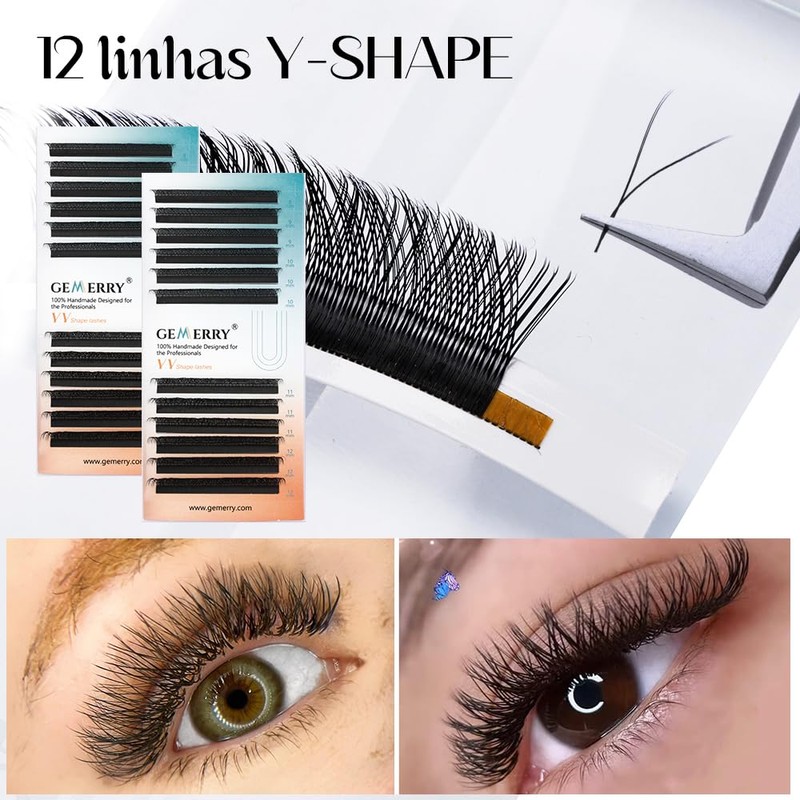 GEMERRY YY-Shaped Volume Eyelashes, Pre-Fanned 2D, 4D Eyelashes, Y Lashes, 0.07 mm, D Curl, Single Size, 8 mm Russian Eyelash Fans for Eyelash Extension, Lash Extensions by GEMERRY (YY lash-0.07D-8