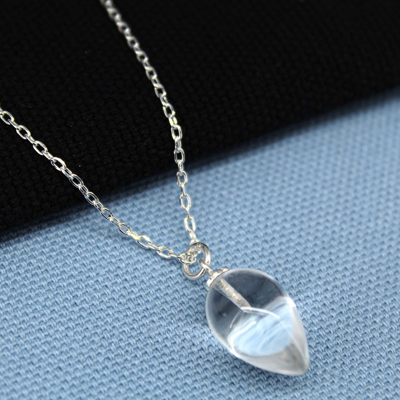 - Stunning Clear Quartz Dew Drop Pendant: Adorned with a 10x15 mm carved clear quartz drop (approx. 10.45 carats), this pendant necklace captures the brilliance and purity of natural clear quartz in a timeless design.