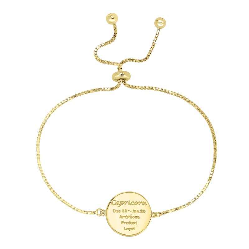 GEMISTRY 14k Gold Over Sterling Silver Capricorn Zodiac Crystal Bracelet with Adjustable Chain, 5 to 9 Inches