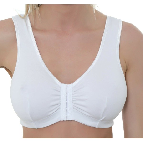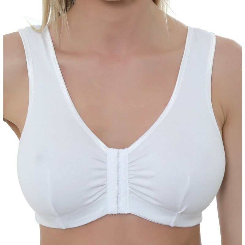 • FRONT FASTENING POST SURGERY BRA - non wired bras for large busts - vest style back and straps which makes this a very good women's everyday bras. Gemm comfort bras for women UK which are ideal bras for large busts.