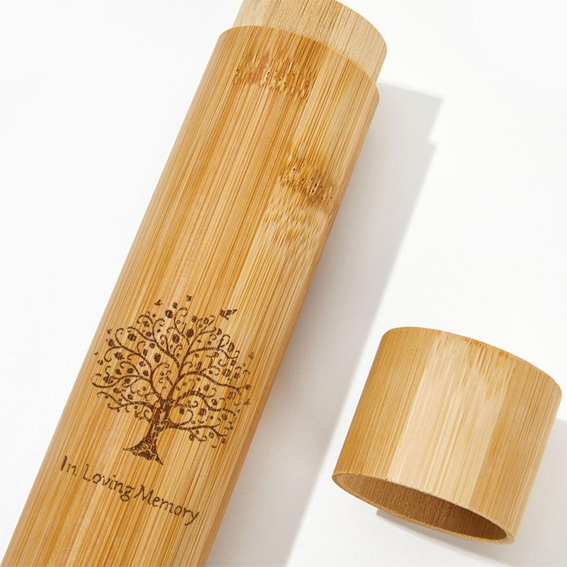 - Elegant Design: Crafted from natural bamboo, this ashes scatter tube is both strong and eco-friendly. Its polished surface feels comfortable to the touch, and the engraved Tree of Life pattern adds a simple yet elegant touch