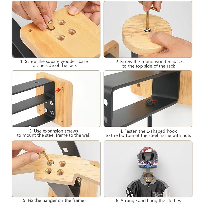 - [Easy Installation] The Helmet Stand comes with all necessary hardware and an installation manual, allowing simply to mount on wall. Enjoy hassle-free setup and start utilizing your space efficiently in no time.