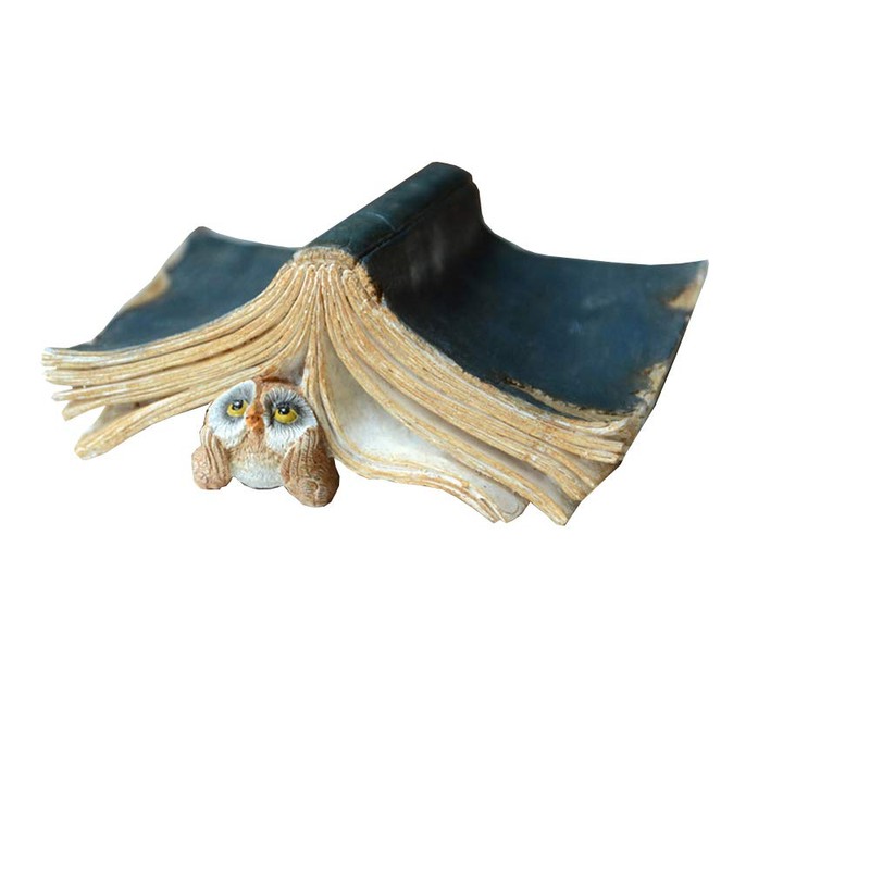 Gemmia Miniature Garden Reading Book Figurine Thinking Owl Statue