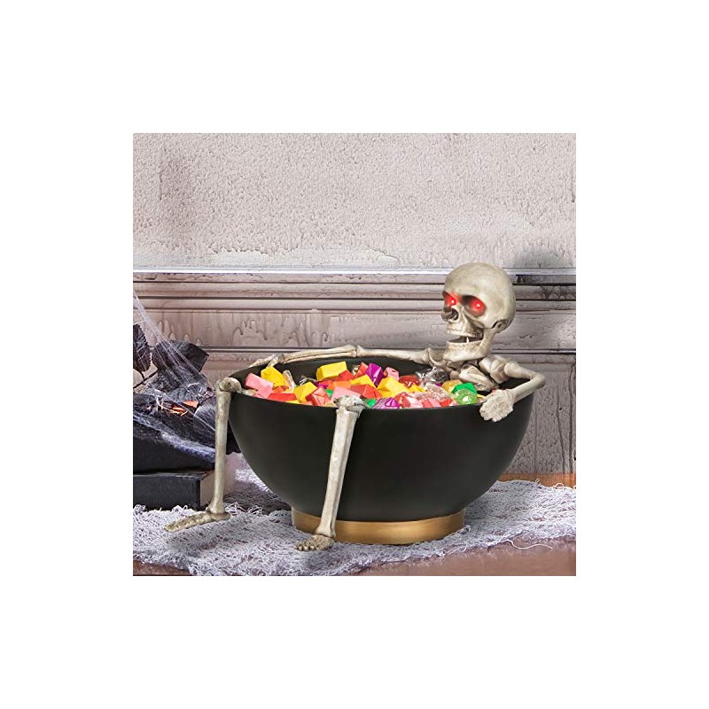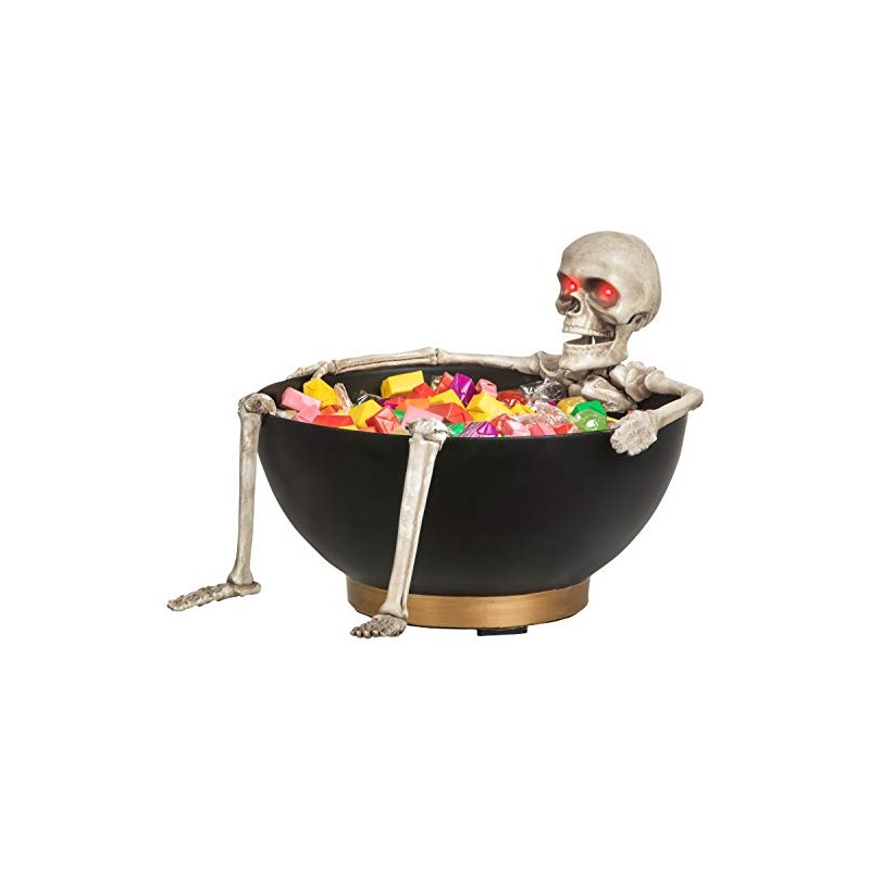 Gemmy Animated Candy Bowl Moving Jaw Skeleton w/Glowing Red Eyes, black