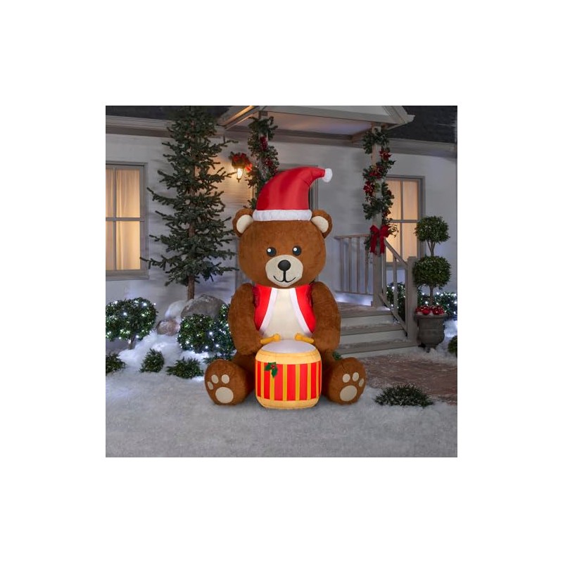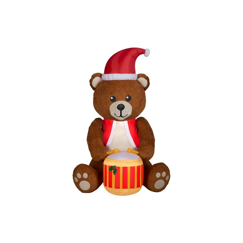 Gemmy Animated Christmas Inflatable Drummer Boy Teddy Bear, 6 ft Tall, Multi