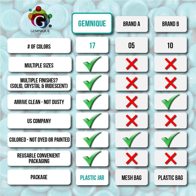 - ★ HIGHEST QUALITY GLASS GEMS ★ Gemnique only uses the highest quality colored glass to ensure the color lasts for many years. We do not use dyes, paints or other methods to artificially color our glass gems. Non-Toxic Lead Free.