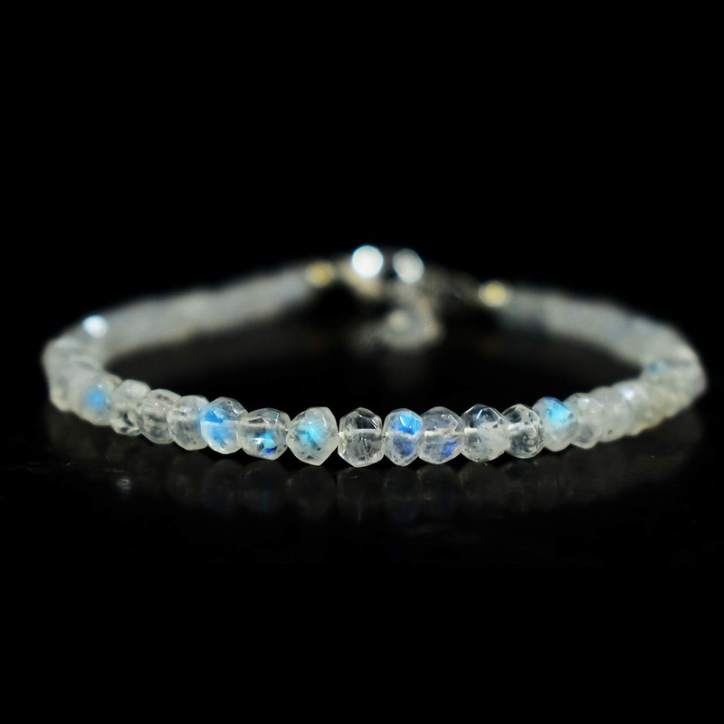 - This moonstone bracelet is made of silver plating and gemstone beads. These beads strung on flexible wire making it a classic and elegant piece of jewelry. This bracelet is 7 inch in length with 1 inch extender chain with fish lock.