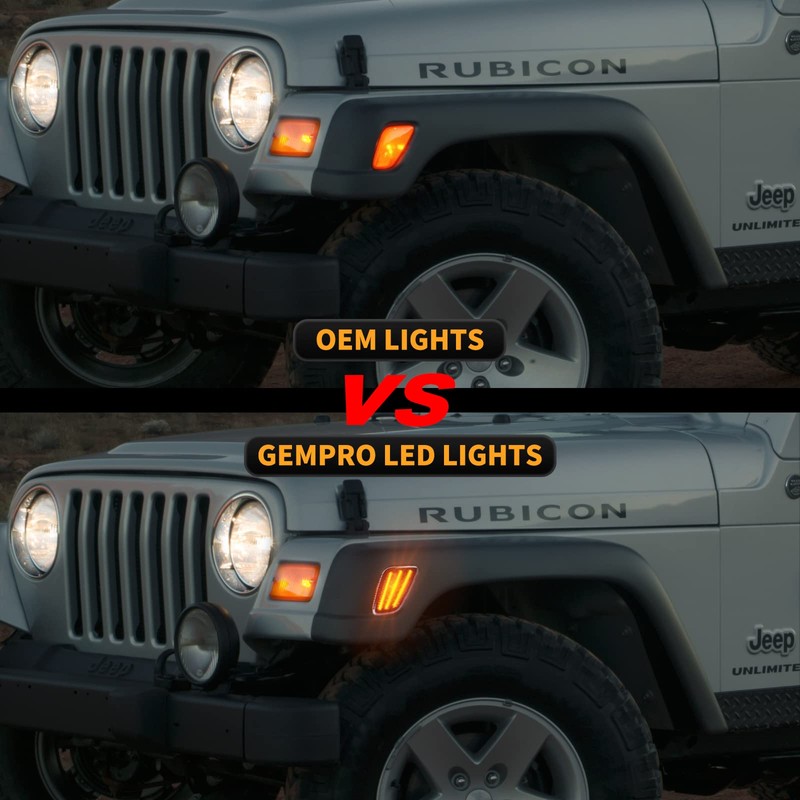 Gempro Led Side Marker Lights Front Signal Lamps for 1997-2006 Wrangler TJ 55...