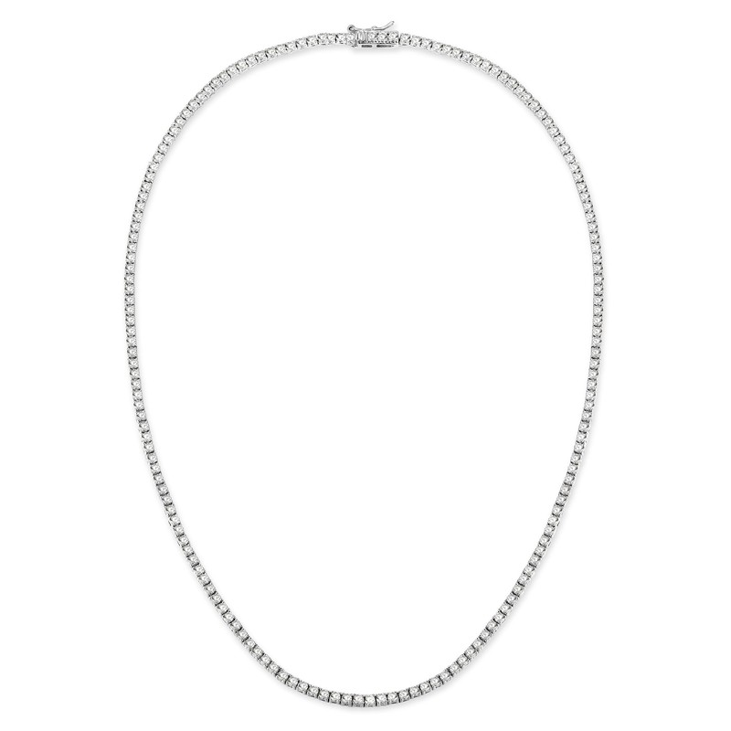 - 4 Prong Setting Necklace: Necklace Measures 16/18/20/22/24 inch. 3mm Round-Cut Cubic Zirconia Stones.