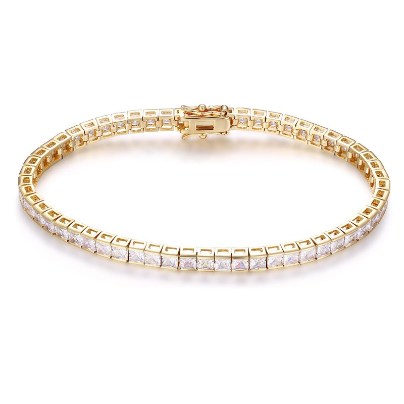 Indulge in the mesmerizing brilliance of AAAAA-grade cubic zirconia stones, meticulously cut into square shapes to emulate the captivating sparkle of genuine diamonds. The premium 18K gold plating accentuates the bracelet's allure, offering enduring shine and elegance.