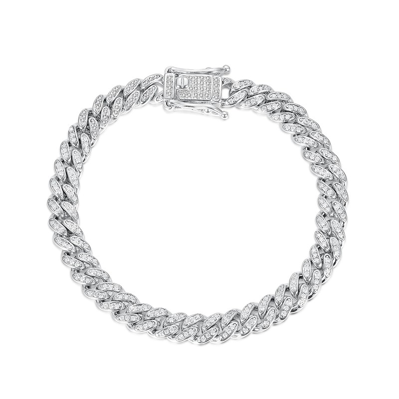 - This iced out cuban link bracelet is made with 18k white gold plated and shining cubic zirconia stones. Nickel-free and hypoallergenic.