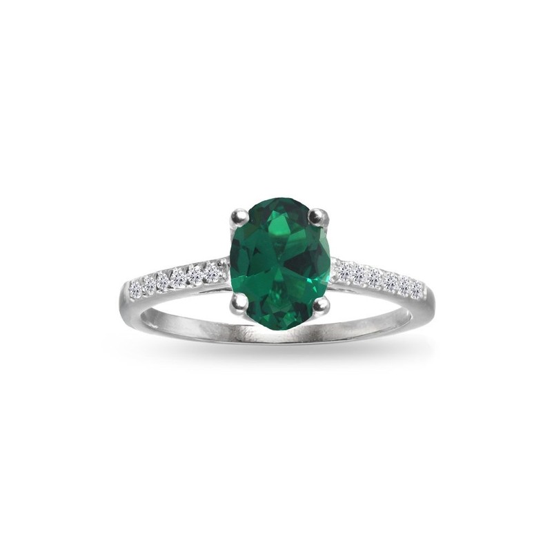 GemStar USA Sterling Silver Simulated Emerald and White Topaz Oval Crown Ring, Size 9