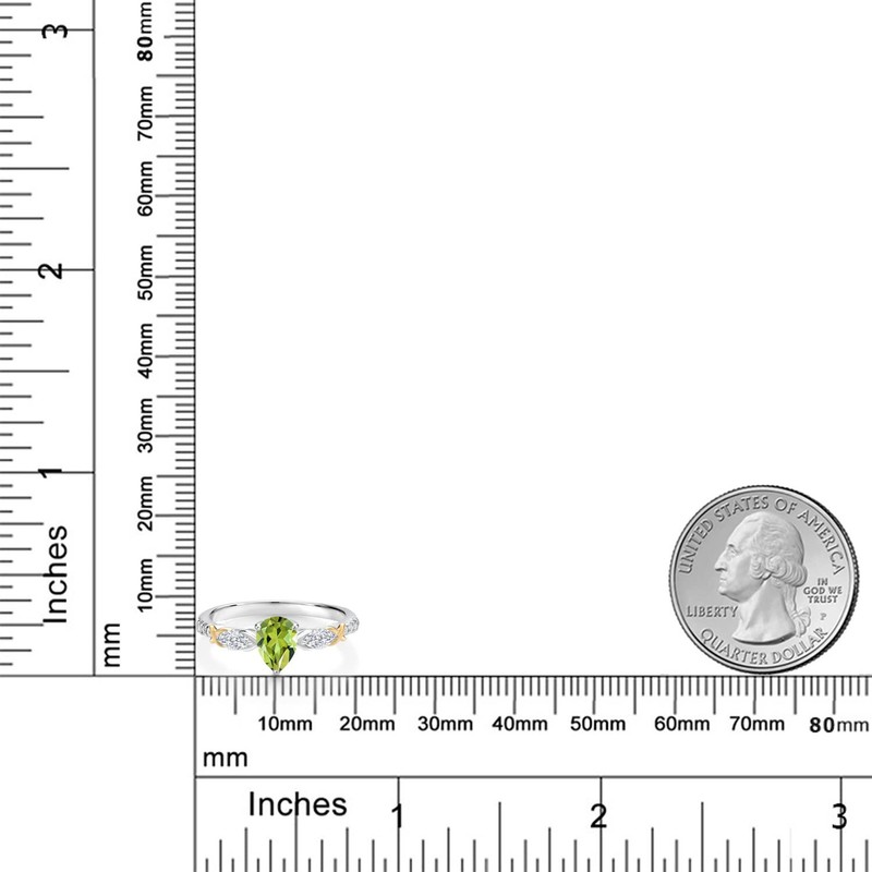 Gemstone Birthstone, Moissanite and Lab Grown Diamond Two-Tone Engagement Ring for Women | 925 Silver 10K Yellow Gold | Pear 7X5MM, Marquise 5X2.5MM, Round 1.2MM | Wedding Anniversary Promise Ring