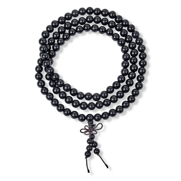 Gemstone Natural Black Onyx Buddhist Mala Prayer Bead Long Natural Strands Beads for Meditation Prayer Yoga Rosary Necklace For Men For Women Stacking Wrap Stretch Bracelet