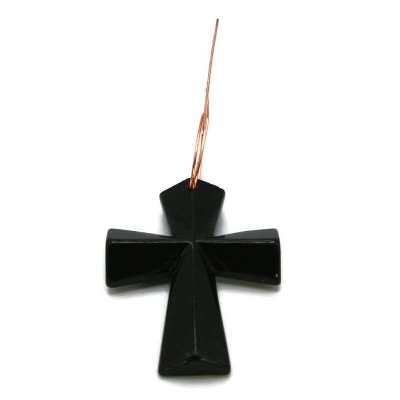 Gemstone Pendants Healing Crystal Crosses with Copper Wire for Necklace (Black Onyx)