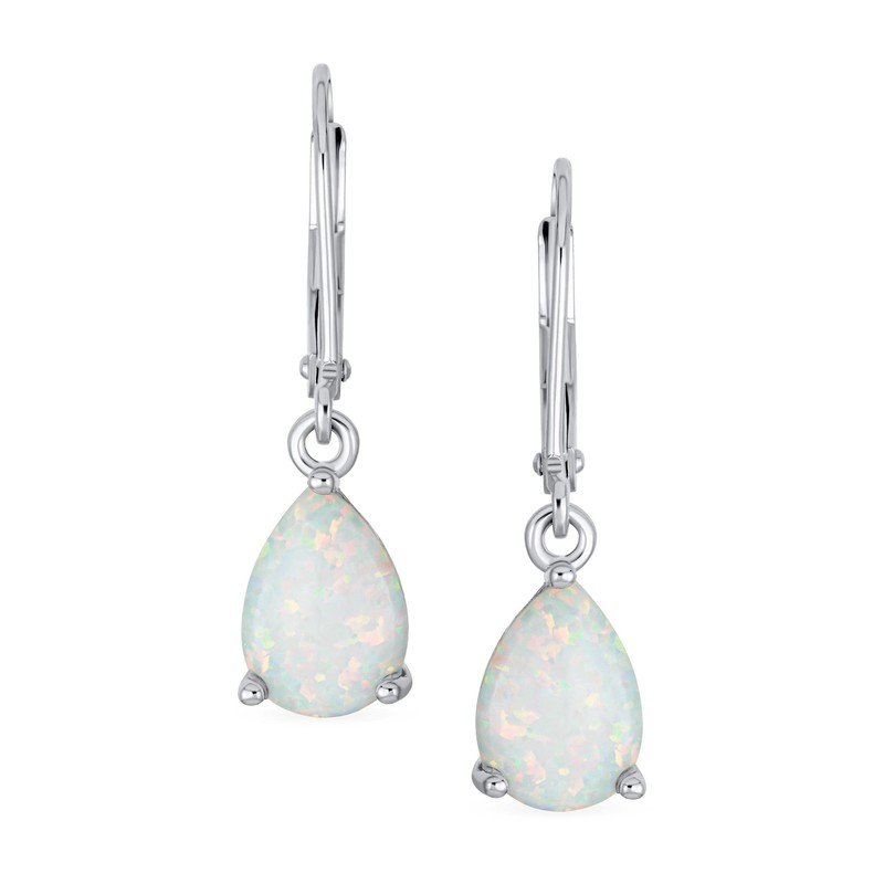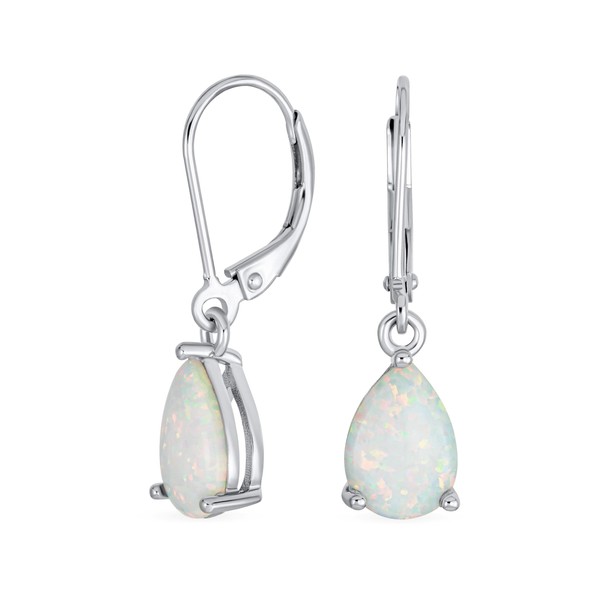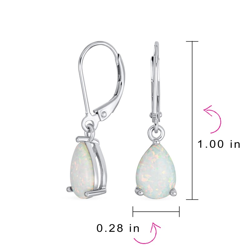 Gemstone Simple White Created Opal Solitaire Pear Shaped Teardrop Dangle Lever back Earrings For Women Teen .925 Sterling Silver