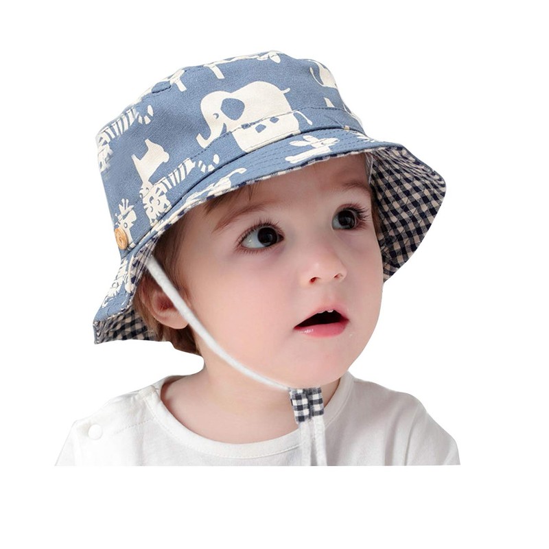 Gemvie Fisherman Hat Baby Boy Girl Sun Hat Toddler with Animal Print 0 - 6 Years Blue - blue