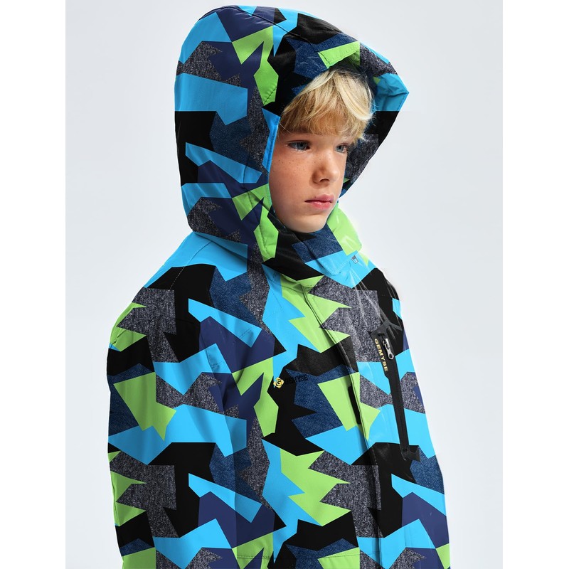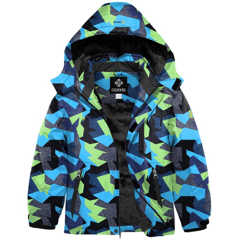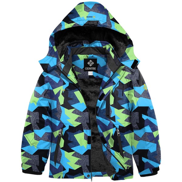 GEMYSE Boy's Waterproof Ski Snow Jacket Hooded Fleece Windproof Winter Jacket (Print 03,14/16)