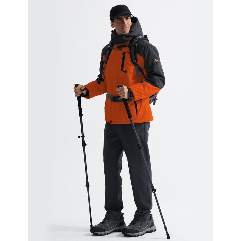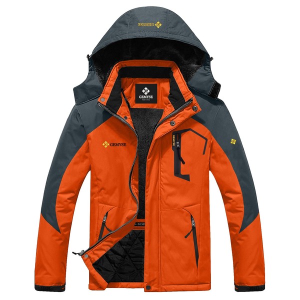 GEMYSE Men's Mountain Waterproof Ski Snow Jacket Winter Windproof Rain Jacket (Orange Grey,X-Large)