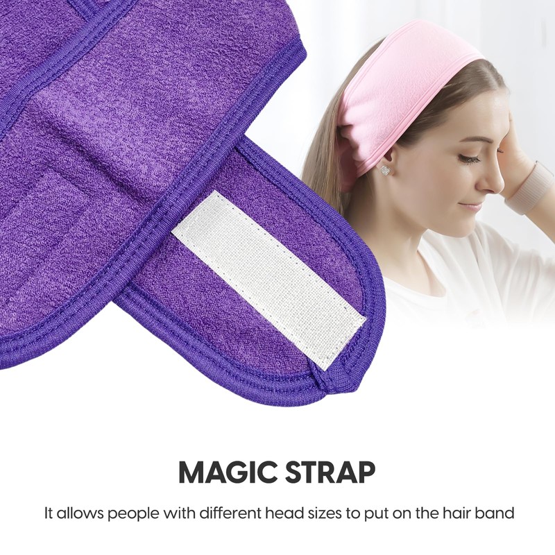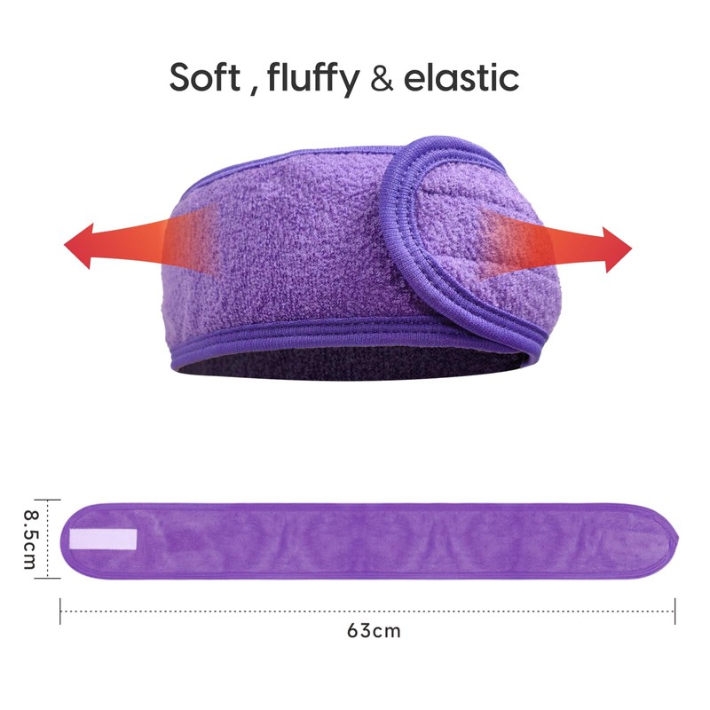 GEN'C BÉAUTY Spa Headbands Facial Makeup Mask Headbands Soft with Magic Tape Adjustable Sizes (Light Purple)