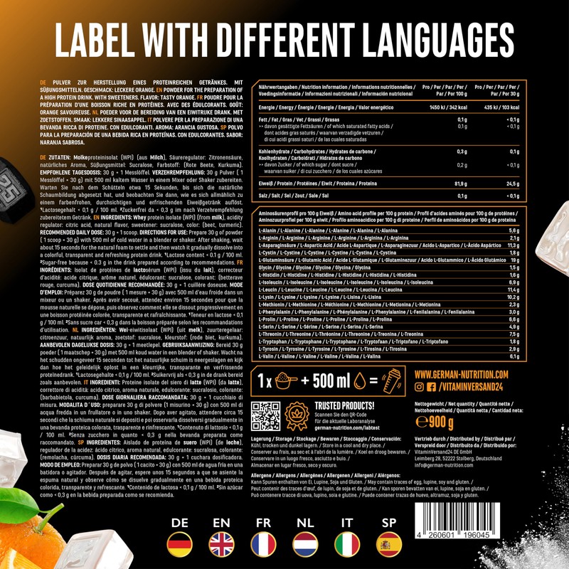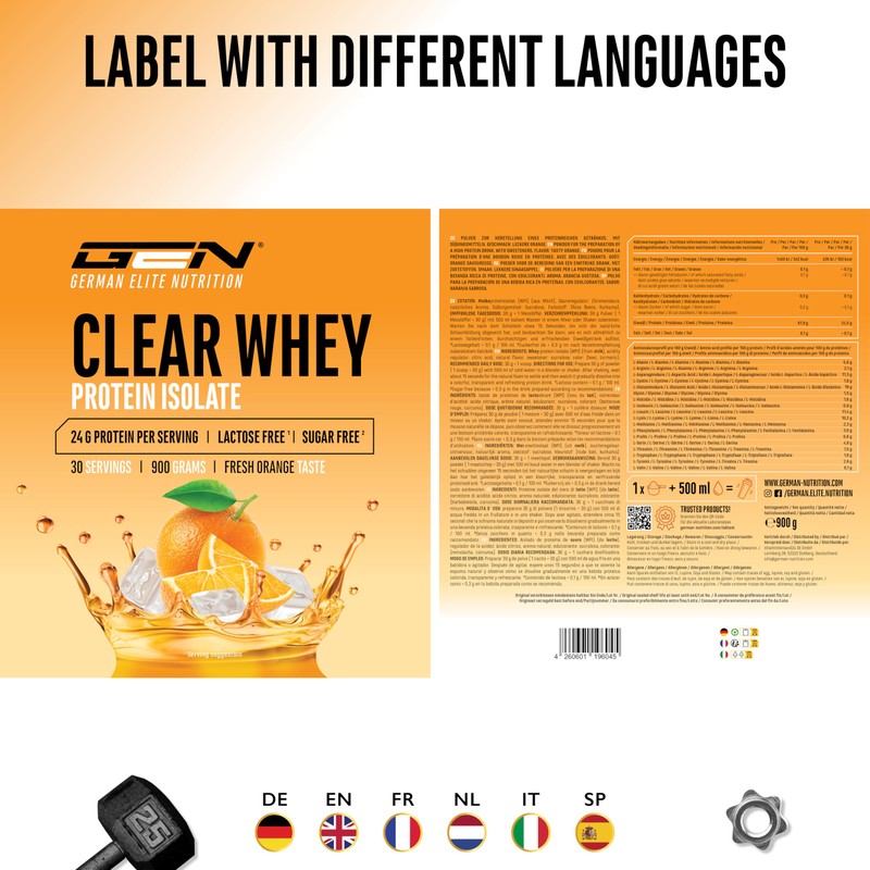 GEN GERMAN ELITE NUTRITION Clear Whey Isolate Proteinshake - Fruchtig & erfrischender Eiweiß-Shake - Hochwertiges Molkenprotein-Isolat (900g, Fresh Orange)