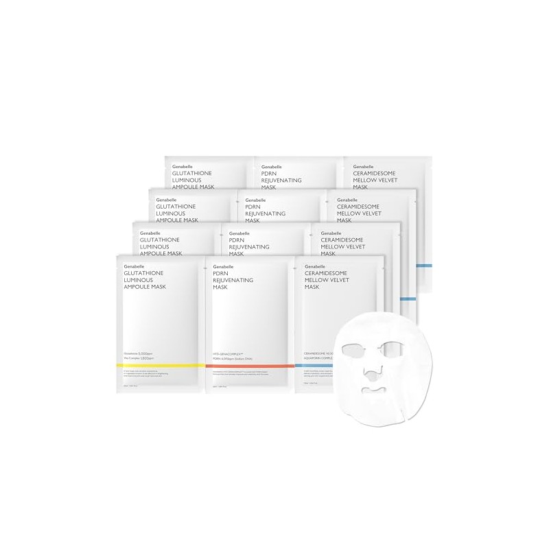 Genabelle Mask Pack of 3 Types 12 Masks (4 Glutathione Masks + 4 PDRN Masks + 4 Ceramide Somal Masks)