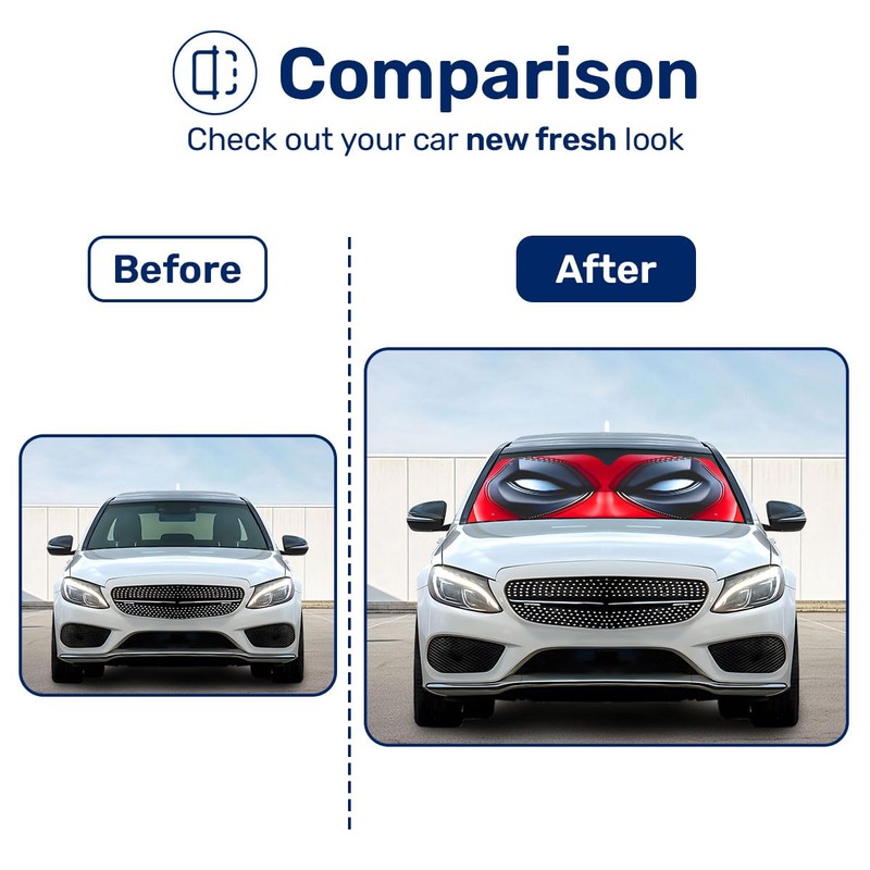 - EASY TO USE AND STORE: The windshield sun shade funny can be installed and removed in a minute. Include four independent suction cups for it to be firmly fixed to the glass. Folding design with additional elastic band for neat storage in your car.